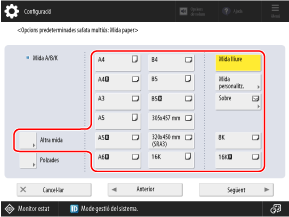 Utilitzeu el tauler de control per fixar la mida i el tipus de paper. No es poden fixar a través de Remote UI (IU remota) des d'un ordinador.