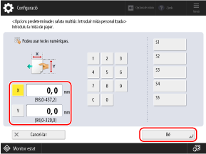 Si no coneixeu la mida (longitud) del paper o voleu imprimir amb la mida de paper establerta al controlador de la impressora, premeu [Mida lliure]. En aquest cas, no cal que dugueu a terme el pas 2 (introduir la longitud).