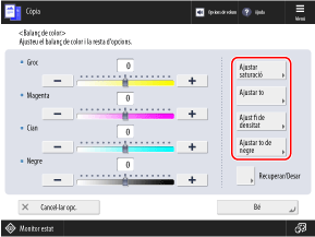Les opcions de [Balanç de color] canvien automàticament segons les opcions de color seleccionades.