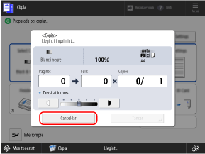 Seguiu les instruccions a la pantalla per cancel·lar una operació de còpia.