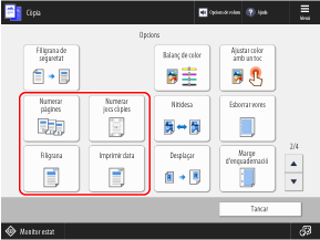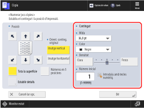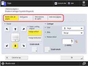 * Quan es realitza la numeració del conjunt de còpies, els números s'imprimeixen a totes les pàgines.