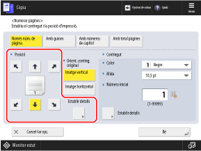 Podeu prémer [Establir detalls] i configurar les opcions per afegir una cadena de caràcters personalitzada als números de pàgina, o bé indicar l'interval de pàgines que vulgueu imprimir.