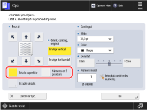* No podeu seleccionar [Tota la superfície] i [Números en 5 posicions] si les opcions estan configurades per afegir una altra informació als números del conjunt de còpies.