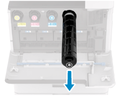 Amb el costat pla del cartutx de tòner mirant cap avall, feu-lo lliscar i premeu-lo fins a dins.