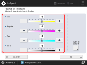 Utilitzeu el tauler de control per ajustar el balanç de color. No és possible realitzar l'ajust a través de Remote UI (IU remota) des d'un ordinador.