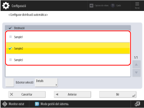 Marqueu les caselles de selecció de les destinacions i premeu [Iniciar distr. manual].