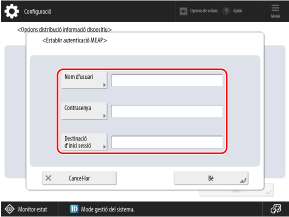 Utilitzeu el tauler de control per definir la informació d'autenticació. No podeu definir la informació mitjançant Remote UI (IU remota) des d'un ordinador.