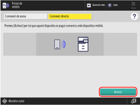 * Hi ha dos modes per connectar directament un dispositiu mòbil a l'equip: Mode de punt d'accés i Wi-Fi Direct. Podeu determinar en quin mode està establert l'equip a la pantalla del pas