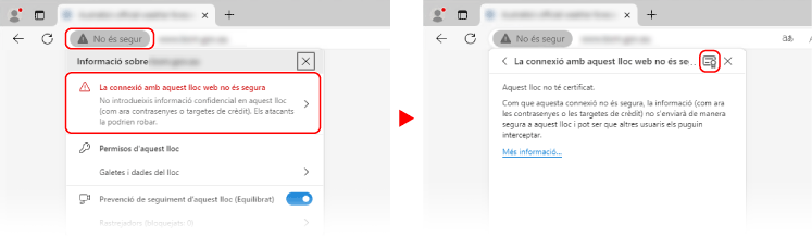 Al camp d'entrada de la URL, feu clic a [No segur]