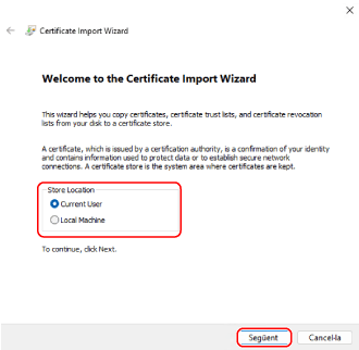 La pantalla [Assistent d’importació de certificats] es mostra a la pantalla.