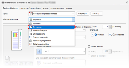 Mostra la pantalla [Preferències d'impressió] del controlador de la impressora.