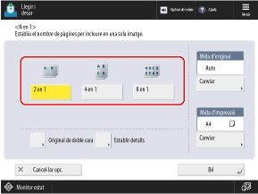 Seleccioneu el nombre de pàgines que voleu combinar en una cara del paper. Per exemple, quan seleccioneu [4 en 1], es combinaran quatre pàgines en una cara del paper.