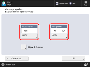 La mida d'impressió de dades (mida del paper de les dades llegides) s'estableix automàticament segons l'opció [Mida quadern].