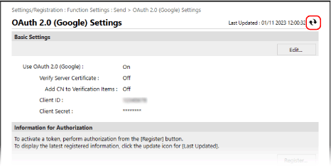 La pantalla [Register Information for Authorization] es mostra a la pantalla.