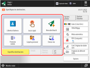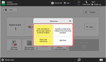 Amb Lectura i enviament fàcils/Lectura fàcil, podeu configurar funcions bàsiques, com ara les destinacions especificades i les opcions de color, fent operacions senzilles amb els botons.