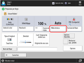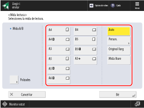 A la pantalla de lectura, premeu el botó d'opció de la mida de l'original.