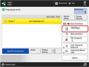* No podeu establir la resolució quan deseu les dades llegides en una bústia. (La resolució es fixa en [600x600 ppp].)