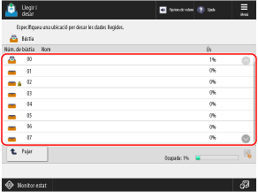 Per seleccionar una ubicació d'emmagatzematge diferent, premeu [Cancel·lar] a la part inferior esquerra de la pantalla.