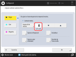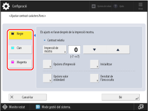 S'imprimeix la impressió de mostra i es torna a mostrar la pantalla [Ajustar contrast caràcters/fons].
