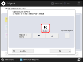 La pantalla [Opcions valor estàndard] es mostra a la pantalla.