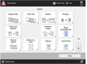 [Numerar pàgines]/[Numerar jocs còpies]/[Filigrana]/[Imprimir data]