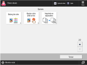 Per esborrar les opcions d'impressió canviades i tornar a la pantalla anterior, premeu [Restaurar opcions] a la part superior dreta de la pantalla.