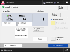 Si s'han seleccionat diversos fitxers, premeu [Canviar nre. de còpies] i introduïu el nombre d'impressions.
