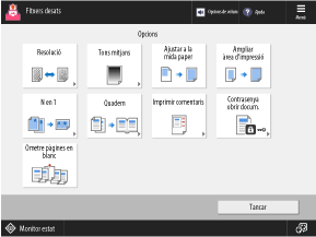 * Segons la configuració, la referència per a la descripció aquí és la descripció en copiar. Substituïu "copiar" per "imprimir" quan us hi referiu. La descripció també pot incloure paràmetres que no es poden configurar per imprimir.