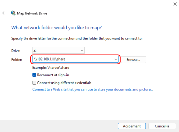 La pantalla [Assigna una unitat de xarxa] es mostra a la pantalla.