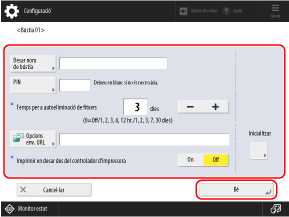Podeu configurar un PIN per restringir els usuaris i canviar el període d'emmagatzematge dels fitxers, segons sigui necessari. També podeu configurar un nom de bústia personalitzat.