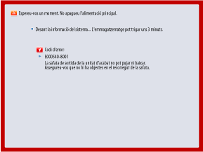 Abans de contactar amb el servei tècnic, reinicieu l'equip per veure si el missatge d'error desapareix. Si el missatge d'error torna a aparèixer, poseu-vos en contacte amb el servei tècnic i informeu dels símptomes.