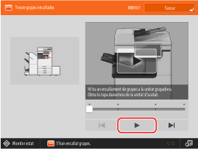 Si es produeix un encallament de grapes, apareixeran al tauler de control un missatge, la ubicació de l'encallament i el procediment que cal seguir per solucionar-ho. Premeu [