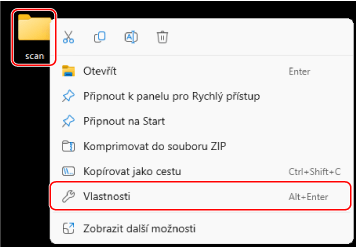 Klikněte pravým tlačítkem na vytvořenou složku a pak klikněte na položku [Vlastnosti].
