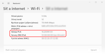 Kontrola informací o síťovém připojení počítače