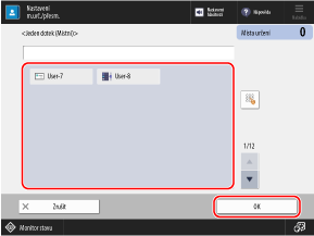 Pokud jsou místa určení spravována pomocí přístupových čísel, stiskněte [Další], zadejte přístupové číslo, aby se zobrazila skupina, která se má uložit, a stiskněte [OK].