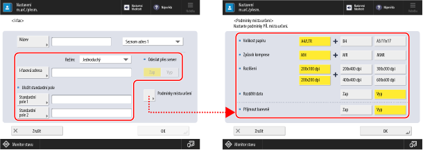Nastavte podmínky místa určení podle specifikací přístroje místo určení. Nastavíte-li podmínky, které přístroj místa určení nepodporuje, může dojít k chybě.