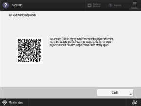 Tato obrazovka se zobrazí po stisknutí [ Nápověda] na obrazovce [Hlavní obrazovka] nebo na jiné obrazovce. Pomocí mobilního zařízení můžete naskenovat QR kód a zobrazit Uživatelská příručka (tento návod) ve webovém prohlížeči na mobilním zařízení.
