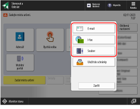 Chcete-li zadat místo určení, které není registrováno v adresáři nebo na serveru LDAP, zadejte místo určení přímo z obrazovky skenování (Skenovat a Odeslat) nebo faxování na ovládacím panelu.
