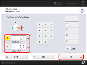 Pokud jsou registrovány často používané nestandardní velikosti, můžete je vyvolat stisknutím [S1] až [S5].
