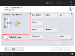Stiskněte [Podání delší stranou] nebo [Podání kratší stranou] podle orientace vložených obálek a vyberte velikost obálky.