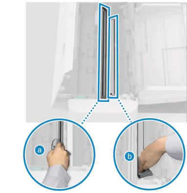 Zatáhněte za modrou páčku nahoře a opatrně otevřete, přičemž dávejte pozor, abyste nepoškrábali kopírovací sklo.