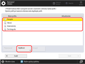 Vyberte profil ze seznamu a stiskněte [Duplikovat].