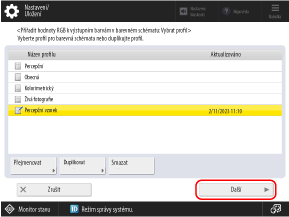 Vyberte vytvořený profil a stiskněte [Další].