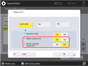 Chcete-li protokol vytisknout pouze tehdy, když dojde k chybě, vyberte možnost [Jen při chybě]. V tomto případě nastavte [Povolit tisk z Volby] na [Zap], chcete-li mít možnost nastavit, zda se má zpráva vytisknout z obrazovky pro skenování nebo faxování.