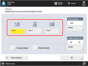 Vyberte počet stránek, které se mají spojit na jedné straně papíru. Pokud například vyberete [4 na 1], spojí se čtyři stránky na jednu stranu papíru.