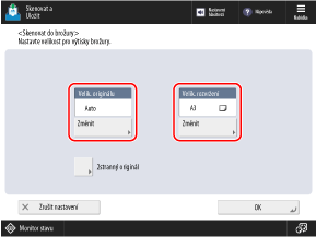 Stisknutím tlačítka [Změnit] nebo [Velik. originálu] vyberte velikost originálu a stiskněte tlačítko [OK].