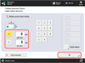 Zadejte délku stran pro [X] a [Y] a stiskněte [OK].