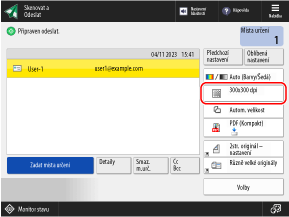 *Rozlišení nelze nastavit při ukládání naskenovaných dat do poštovní schránky. (Rozlišení je pevně nastaveno na [600x600 dpi].)