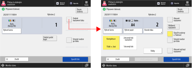 Pokud před stisknutím [Smazat soubor po tisku] vyberete [Spustit tisk], vytištěný soubor se z přístroje automaticky odstraní.