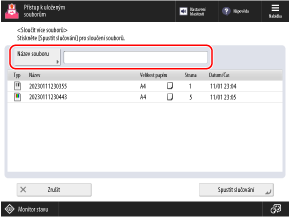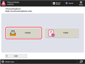Na ovládacím panelu stiskněte tlačítko [Přístup k uloženým souborům] na obrazovce [Hlavní obrazovka]. Obrazovka [Hlavní obrazovka]